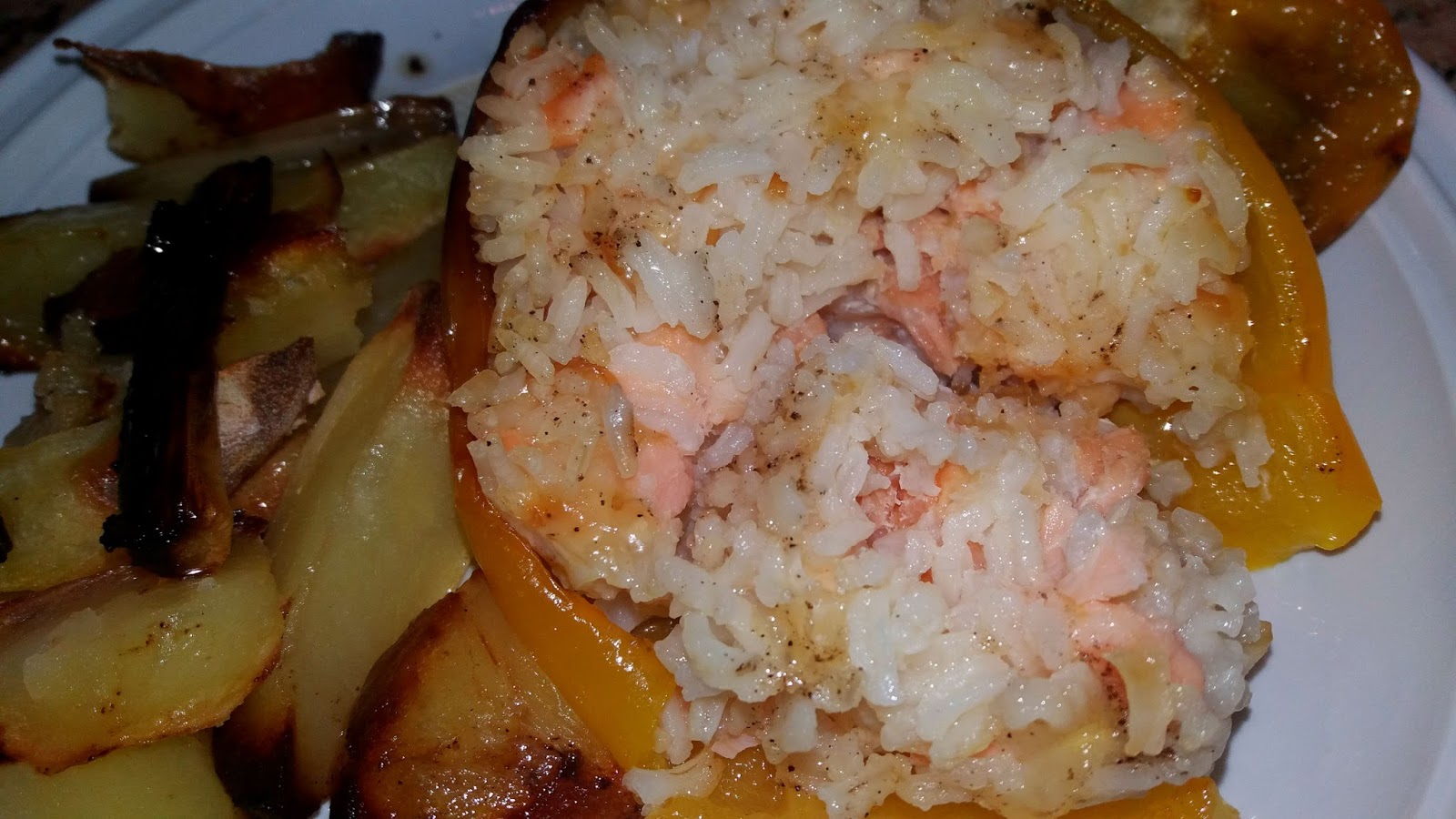 spezzettato,con quanto ottenuto riempire i peperoni,coprire con la calotta e poggiarli in una teglia