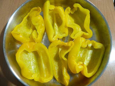 Pulire i peperoni sotto l’acqua corrente dividerli a metà ed eliminare i semi e i filamenti, lasciamoli sgocciolare mentre prepariamo il ripieno.