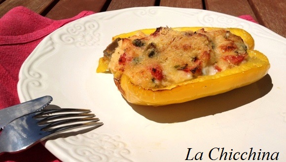 Il ripieno di questi peperoni è composto da pane raffermo, pomodoro, olive, capperi e formaggio…