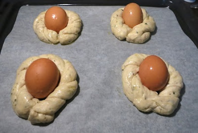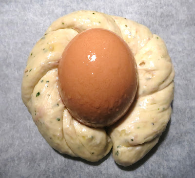 Porre al centro di ognuno un uovo e chiudere la ciabellina ottenuta ponendo al centro un uovo..