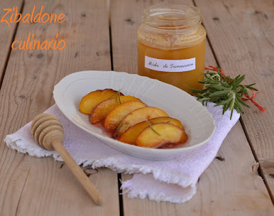 Scaldare un cucchiaino di miele in una padella antiaderente, aggiungere qualche rametto di rosmarino, quando il miele scaldandosi si sarà liquefatto.
