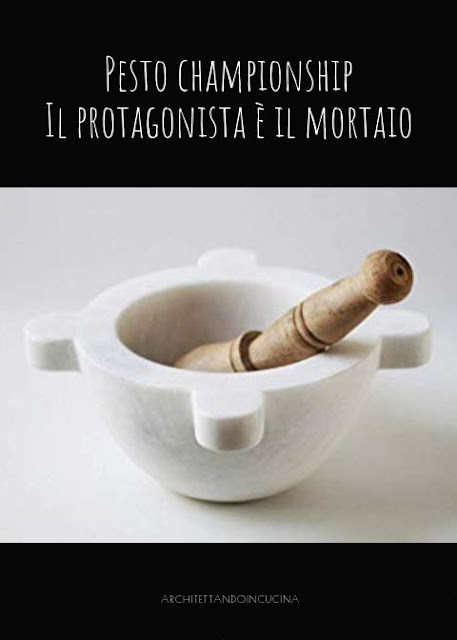 Ma in questa competizione il vero protagonista è il mortaio: realizzato in marmo di Carrara con il pestello in legno di faggio. Ed è pestando le foglie di basilico prima con il sale grosso, l’aglio ed i pinoli e poi dopo una grossolana macinatura, insieme anche ad olio e formaggi, si giunge pestando, pestando alla profumatissima salsa simbolo della città di Genova.