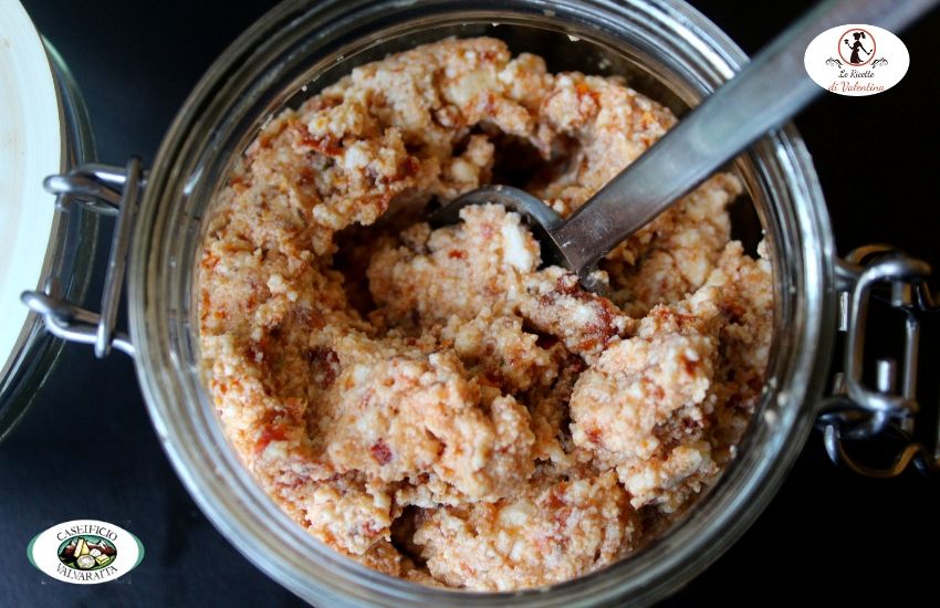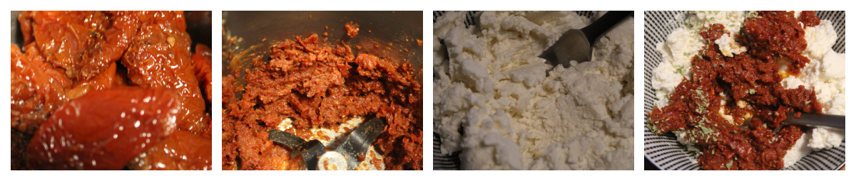 Per ottenere un composto omogeneo vi consiglio di aggiungere un paio di cucchiai d’olio dei pomodori, dovrete fidarvi al vostro istinto. Il pesto deve risultare cremoso, quindi aggiungete l’olio poco alla volta basandovi anche sulla consistenza del formaggio, alcune ricotte sono più cremose altre più dense.