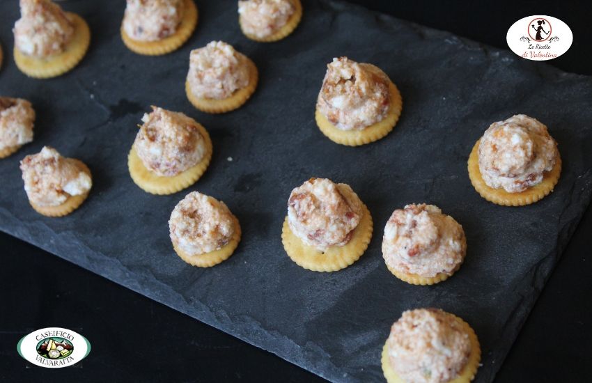 Ora spetta a voi se spalmarla su dei crostini oppure farcire dei cracker, potrete farlo con un coltello oppure in modo più elegante con una tasca da pasticcere.