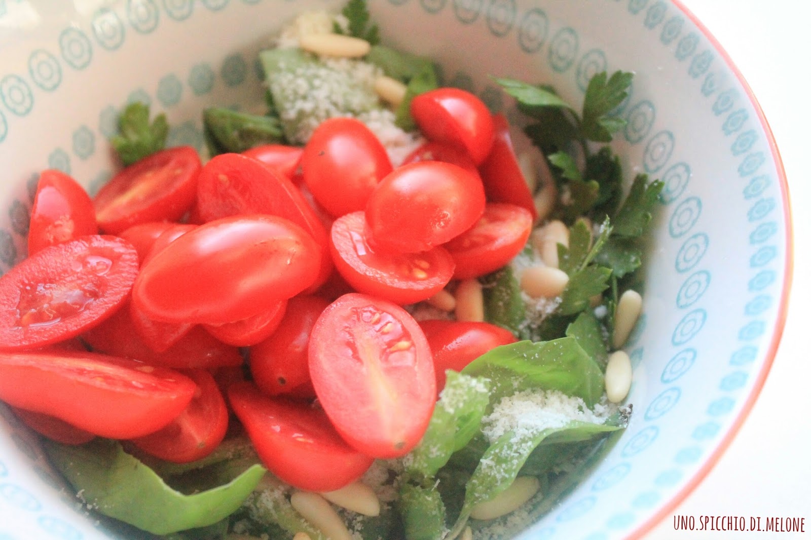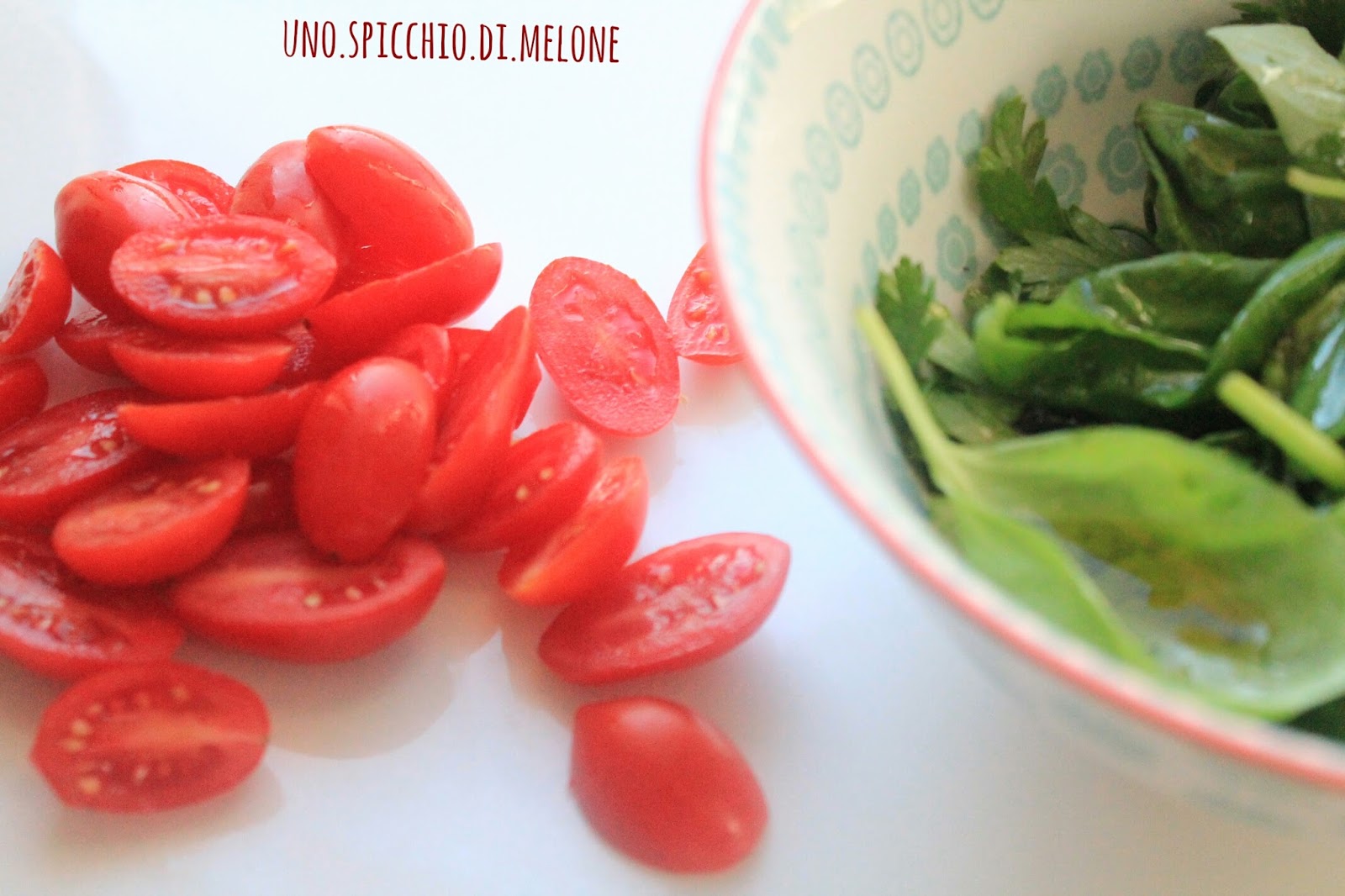 100 g di pomodorini (io adoro i datterini, dolci e meno acidi rispetto ad altri)