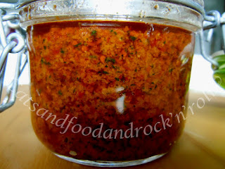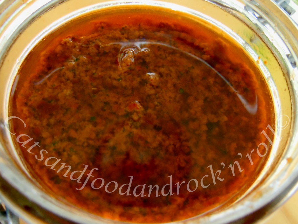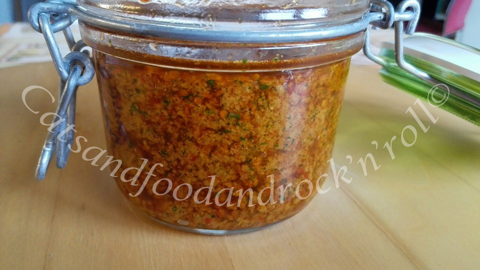 Questa è una salsina tuttofare, piccante a base di pomodorini secchi, una cosa che mi frullava nella testa da un po’ e che volevo fare col primo scotch bonnet red che stava maturando sulla pianta.