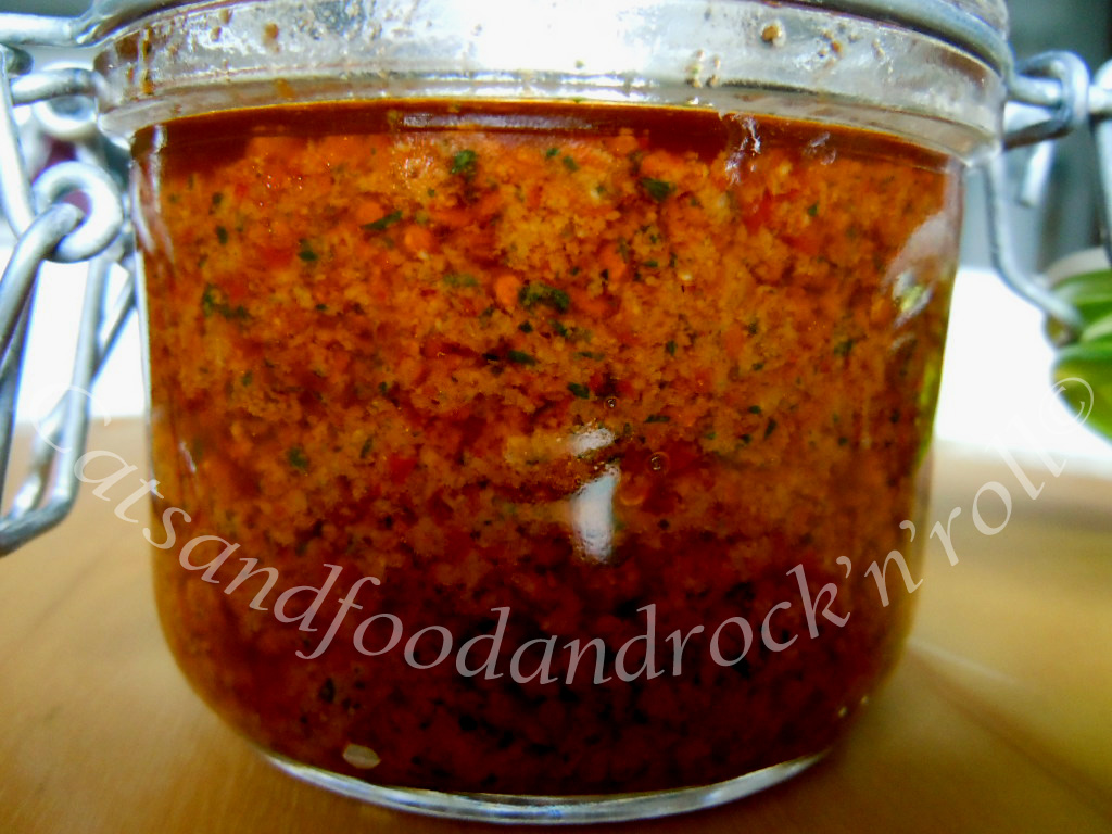 Di fatto, questo è a tutti gli effetti un pesto da preparare integralmente a freddo, con l’aiuto di un banale mixer, e che può essere consumato tal quale così com’è, ma si può anche aggiungere, per esempio, a un sughino semplice di pomodoro, sia fresco che in conserva, per dare più sapidità.