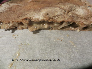 Stendere la sfoglia finemente con il matterello su una teglia con cartaforno, versarvi la farcia. Stendere l’altra metà dell’impasto su un foglio di cartaforno in modo da aiutarsi meglio per ricoprire la sfoglia con la farcia. Togliere delicatamente la cartaforno e sigillare i bordi delle due sfoglie. Con un tagliapasta o un coltello praticare dei tagli sulla sfoglia superiore, faranno uscire il vapore in eccesso evitando che si gonfi. Cuocere a 220° per 30 minuti.
