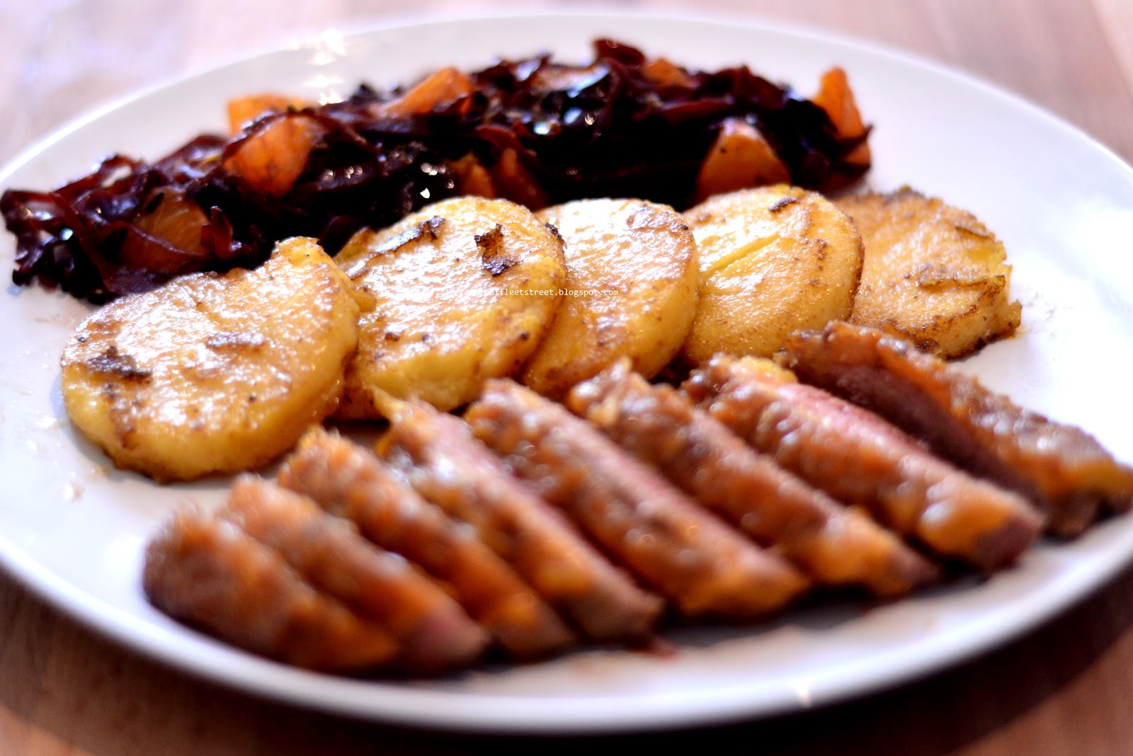 Petto d’anatra all’arancia, miele ed anice con insalata agrodolce di cavolo rosso e crostini di polenta – 1 h se ben organizzati + 1 notte di riposo