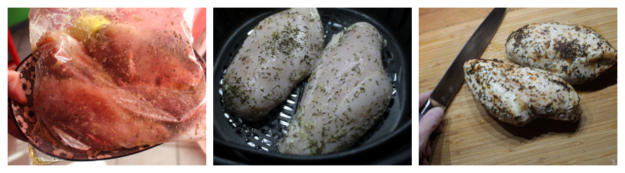 Quello che vi occorre è un sacchetto per il congelatore con chiusura a zip, infilateci i due fusi di pollo con tutti il altri ingredienti, importante per avere più sapore è grattugiare la scorza del limone, spremerne il succo e aggiungere anche il frutto. Chiudete il sacchetto cercando di far fuoriuscire l’aria in eccesso; massaggiate la carne attraverso la plastica in modo che il condimento penetri nella carne. Lasciate riposare il tutto per almeno 30 minuti, oppure preparate la marinata a pranzo per la sera come faccio io. In questo caso adagiate il sacchetto su un piatto e riponete in frigorifero, ricordatevi di estrarlo almeno 30 minuti prima della cottura.