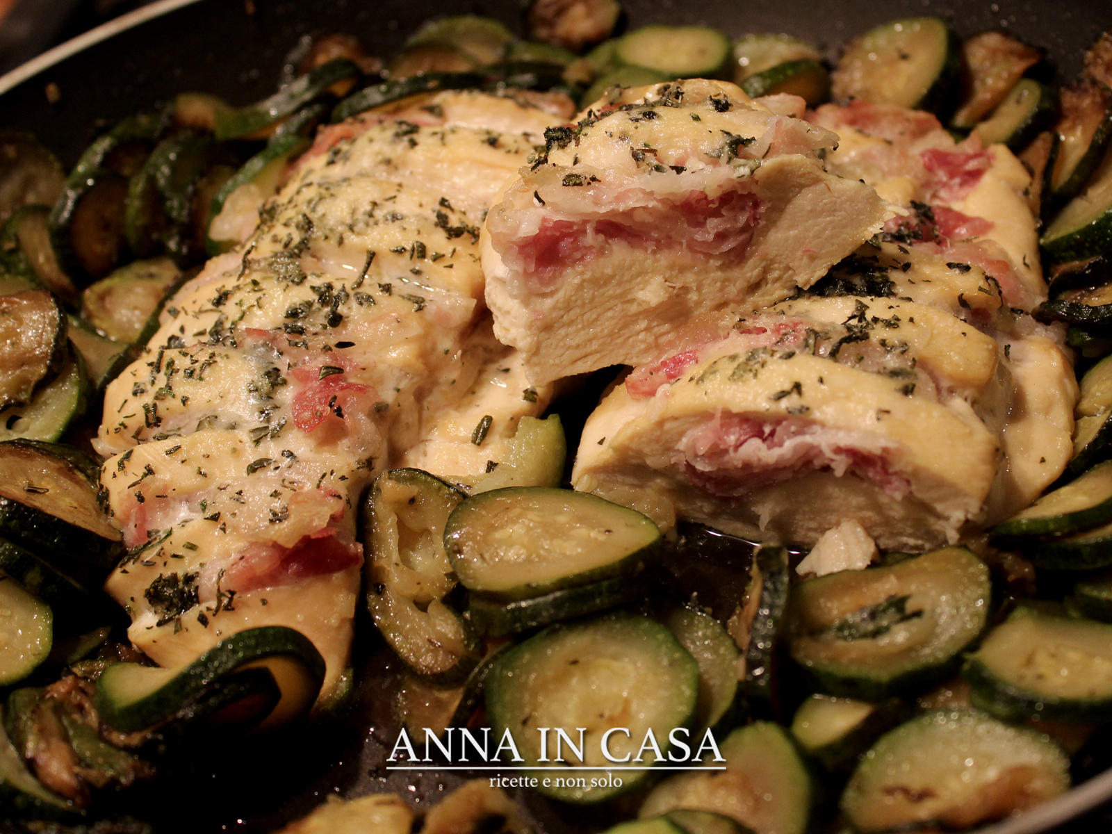 Riempire tra un taglio e l’altro la carne con una fetta di pancetta.