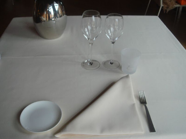 Nella ristorazione di fascia alta e di tendenza, la mise en place è essenziale. Il commensale a tavola troverà esclusivamente i bicchieri, una posta ed un tovagliolo.