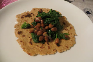 per la piadina: 125 gr farina di farro appena macinata, 25 gr olio extravergine d’oliva, 1/4 di bicchiere d’acqua, 1 pizzico di sale integrale.