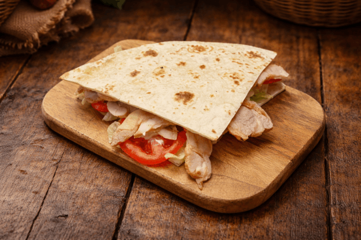 Preparazione della Piadina con kebab di pollo