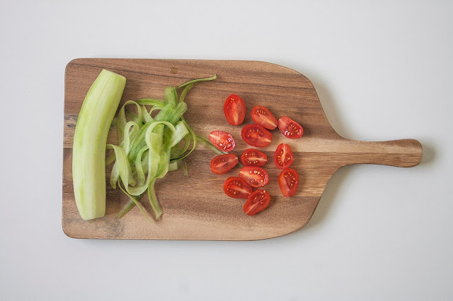 Lavate i pomodorini e il centriolo accuratamente, poi tagliate quest’ultimo a fette sottili nel senso della lunghezza e i pomodorini in 4 e poi mettete le verdure da parte.