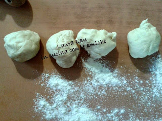 Dividi la pasta ottenuta in 4 pezzetti, versa un pochino di farina sul piano di lavoro e stendi in cerchi dello spessore di circa 3 mm e 20 cm di diametro.