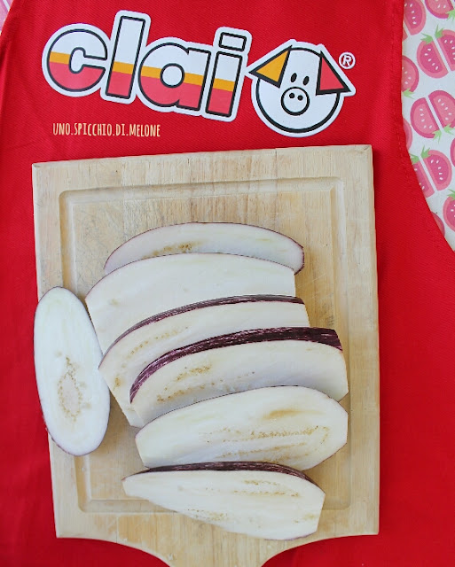 Prendete una bella MELANZANONA, lavatela, depicciolatela e ricavatene delle fette spesse un dito.