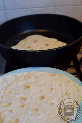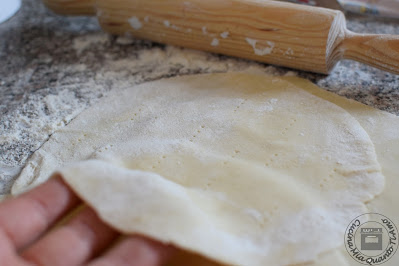 A questo punto stendete con il mattarello ogni piadina molto sottile, punzecchiate con una forchetta per evitare che in cottura si gonfi.