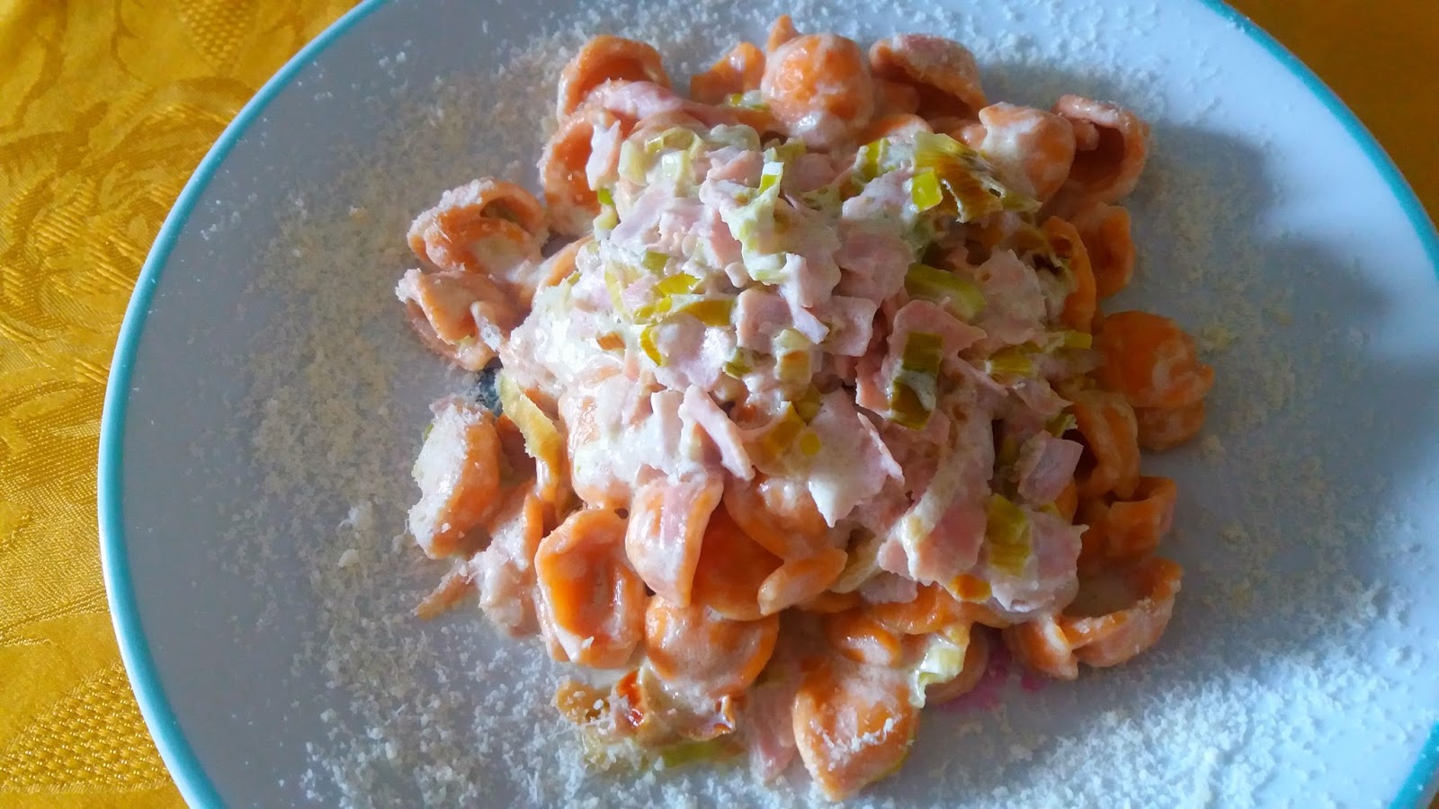 intanto che cuoce la pasta…tagliuzzate il prosciutto ed aggiungetelo al porro imbiondito,