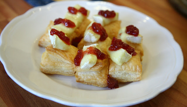Oggi vi propongo un antipasto velocissimo e sfiziosissimo: piccoli bocconcini di sfoglia con brie e composta di ribes rosso da servire rigorosamente tiepidi.