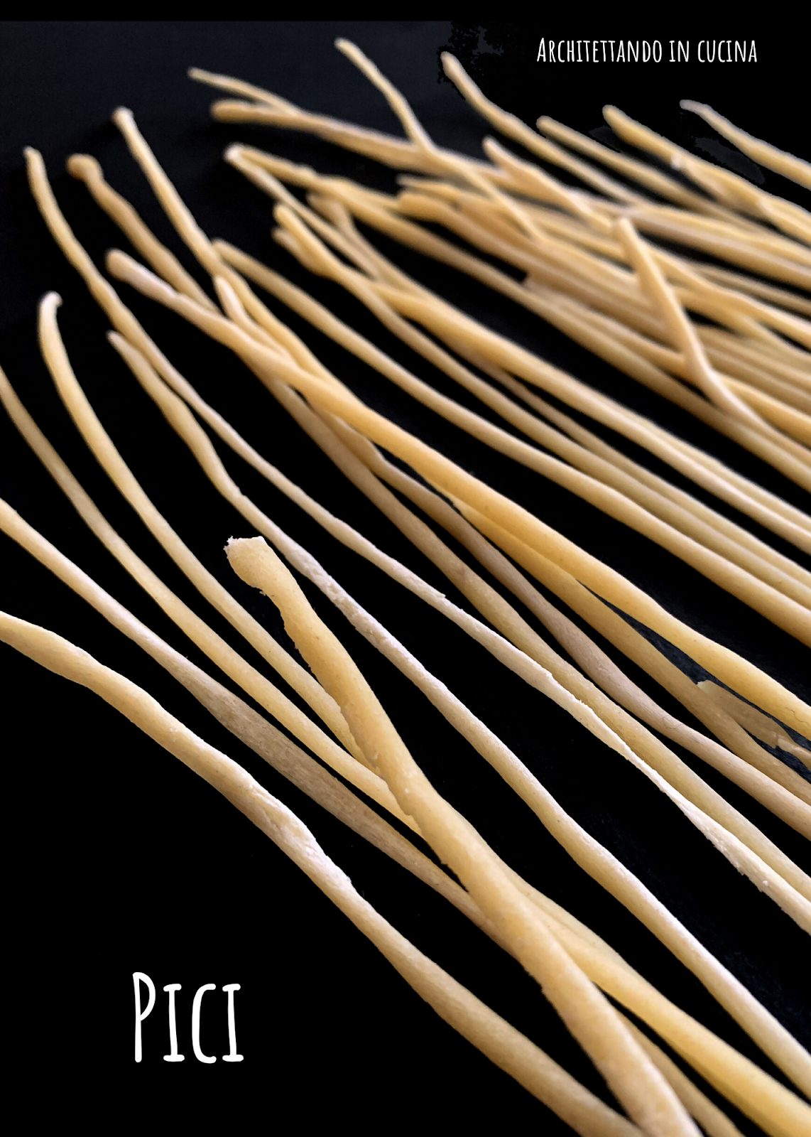 In questo blog ci sono molte ricette di pici, quelli all’aglione, e quelli con il ragù di colombaccio, quindi figuriamoci se oggi mi lasciavo scappare l’occasione di festeggiarli con il Calendario del Cibo Italiano (26 gennaio, giornata dei Pici e dei Bigoli).