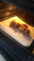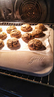 Sull’onda del “ma perché no?” ho provato a cuocere i cookies americani con gocce di cioccolato, come ben sapete si preparano delle palline che con il calore del forno pian piano si appiattiscono, con la cottura su pietra, i biscotti si cuociono a 170° forno ventilato in 15 minuti, ho utilizzato la carta forno anche in questo caso come prova, i biscotti risultano croccanti ma rimangono un po’ bombati come in foto.