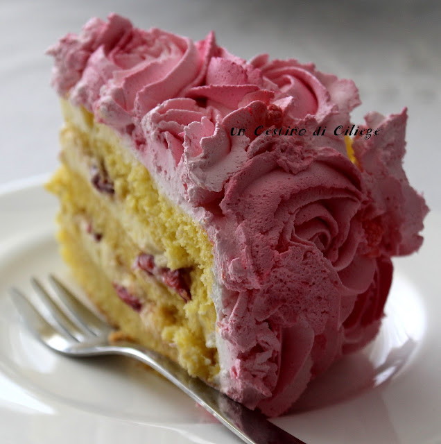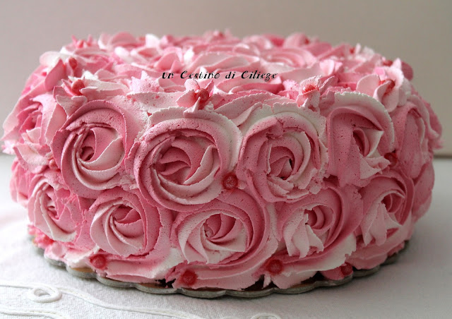 Questa è la torta che ho preparato per il compleanno di mia figlia, decorata con rose di panna sfumate.