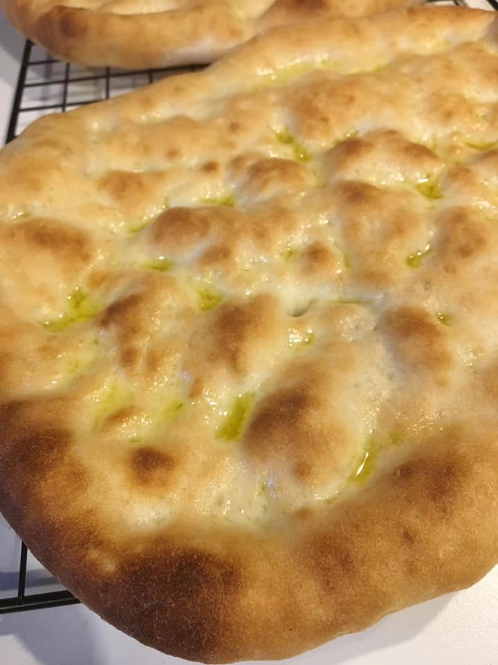 Vi spiego adesso passo passo come ho proceduto ma prima voglio fare un paio di premesse: io ho utilizzato la planetaria per impastare e direi che per i nostri impasti gluten free, la planetaria è, fra gli attrezzi costosi, sicuramente il più utile da procurarsi. Ovviamente se non l’avete, potrete usare le frustine elettriche e lavorare con gli stessi tempi indicati nella ricetta. La cottura: questo è sempre il fattore più importante nella realizzazione di pane, focacce e simili; in particolar modo, per questa farina servono alte temperature affinché l’acqua contenuta nell’impasto (parliamo, come vedrete di una idratazione molto alta) possa immediatamente essere asciugata senza che il prodotto si secchi e quindi cuocere per poco tempo. A questo scopo, risulta fondamentale l’uso della pietra refrattaria (o magari il fornetto tipo Ferrari, con la penalizzante serpentina che vi costringerà ad abbassare l’impasto) che restituisce immediatamente calore all’impasto. Più alta è inoltre la temperatura del forno e meglio è (io ho cotto a 280° ma secondo me potevo anche arrivare a 300°). Il mio consiglio è quello di investire pochi euro su una pietra refrattaria (ne trovate in rete, io ho questa ad esempio)