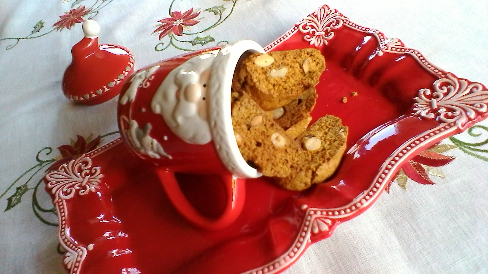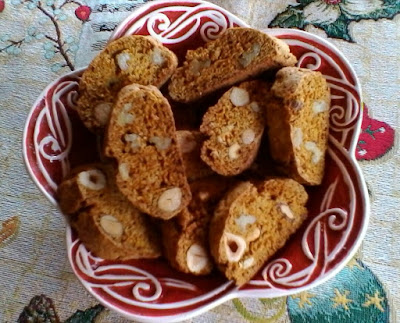 La ricetta originale prevede lo strutto, io però l’ho sostituito con l’olio. In più ho aggiunto il vino cotto che rende i biscotti ancora più aromatici e le nocciole.