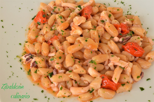 Oggi il Calendario del Cibo Italiano festeggia la giornata dei pisarei e faso, piatto tipico della mia città, Piacenza, potevo non partecipare? Certo che no! Così dopo aver consultato il blog e aver valutato tutte le diverse versioni presenti, da quella classica con ricetta codificata a quella della nonna, passando per quella storica (con i fagioli dall’occhio anziché i borlotti) ho pensato di proporli con un sugo di pesce…sicuramente poco tradizionale per questo piatto nato nella Pianura Padana, ma buonissimo. Infatti ne ho avuto la riprova proprio questa estate in un ristorante cittadino e mi hanno convinto alla grande, il sugo saporito e leggermente piccante di pesce si sposa bene con il gnocchetto a base di pane, la cottura assieme rende il condimento “spesso” e vellutato, che migliora ulteriormente il piatto. Insomma che ve lo di a fa…provateli!!!