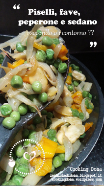 - Aggiungere i piselli surgelati alle fave e sedano assieme all’aglio tagliato a fettine, spolverare con il dado granulare vegetale e far cuocere, se necessario aggiungere un po’ d’acqua.
