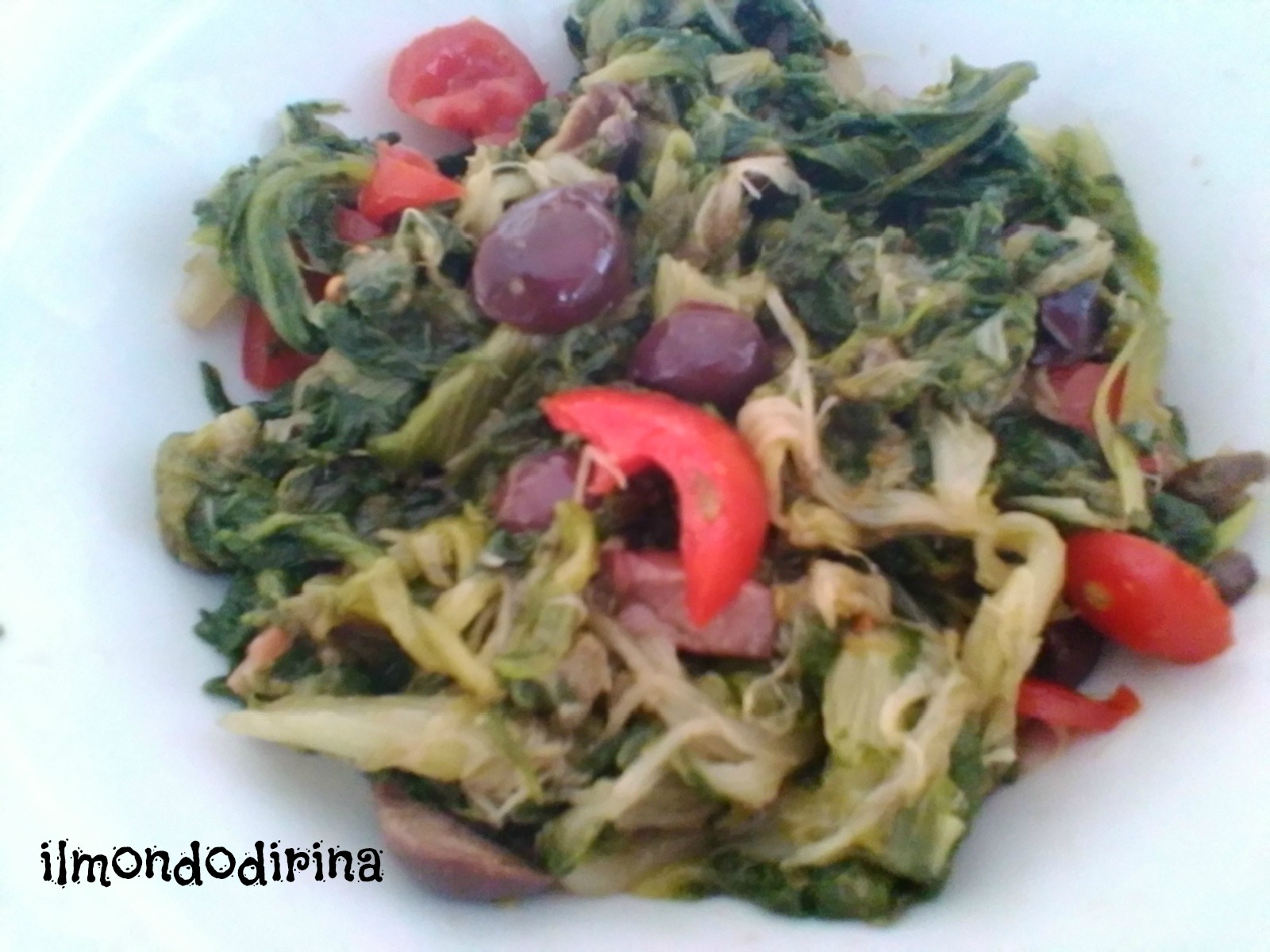 In una ciotola unite la scarola con le olive, i capperi, le sarde salate, i pomodori, il pecorino e un paio di cucchiai di olio evo. Mescolate bene.