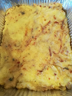 In una teglia oliata e cosparsa di pangrattato stendere uno strato di purea
