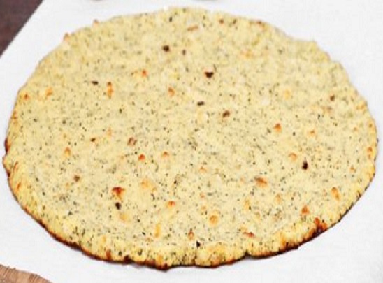 Quando è bello asciutto aggiungete la farina di mandorle, il basilico tritato finemente, il sale e una macinata di pepe nero. Aggiungete le uova di chia e impastate. Otterrete un impasto molto simile a quello di farina, stendetelo in una teglia da forno schiacciando l’impasto sino ad ottenere lo spessore che preferite. A me piace la pizza romana molto bassa e croccantina. Il forno deve essere al massimo e dovete cuocere la pizza per circa 35/40 minuti. Ecco il risultato e vi garantisco che è già buona così: