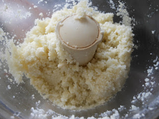 Poi cominciamo con il preparare la pasta per la base della pizza. Riducete a cimette il cavolfiore pulito e tritatelo con il robottino. Deve diventare grande come dei chicchi di riso o più piccolo. Eccovi l’immagine direttamente dal robottino: