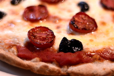 Mettete sotto il grill del forno in modalità statica e fate dorare tre minuti, estraete e completate con i pomodorini e le olive.