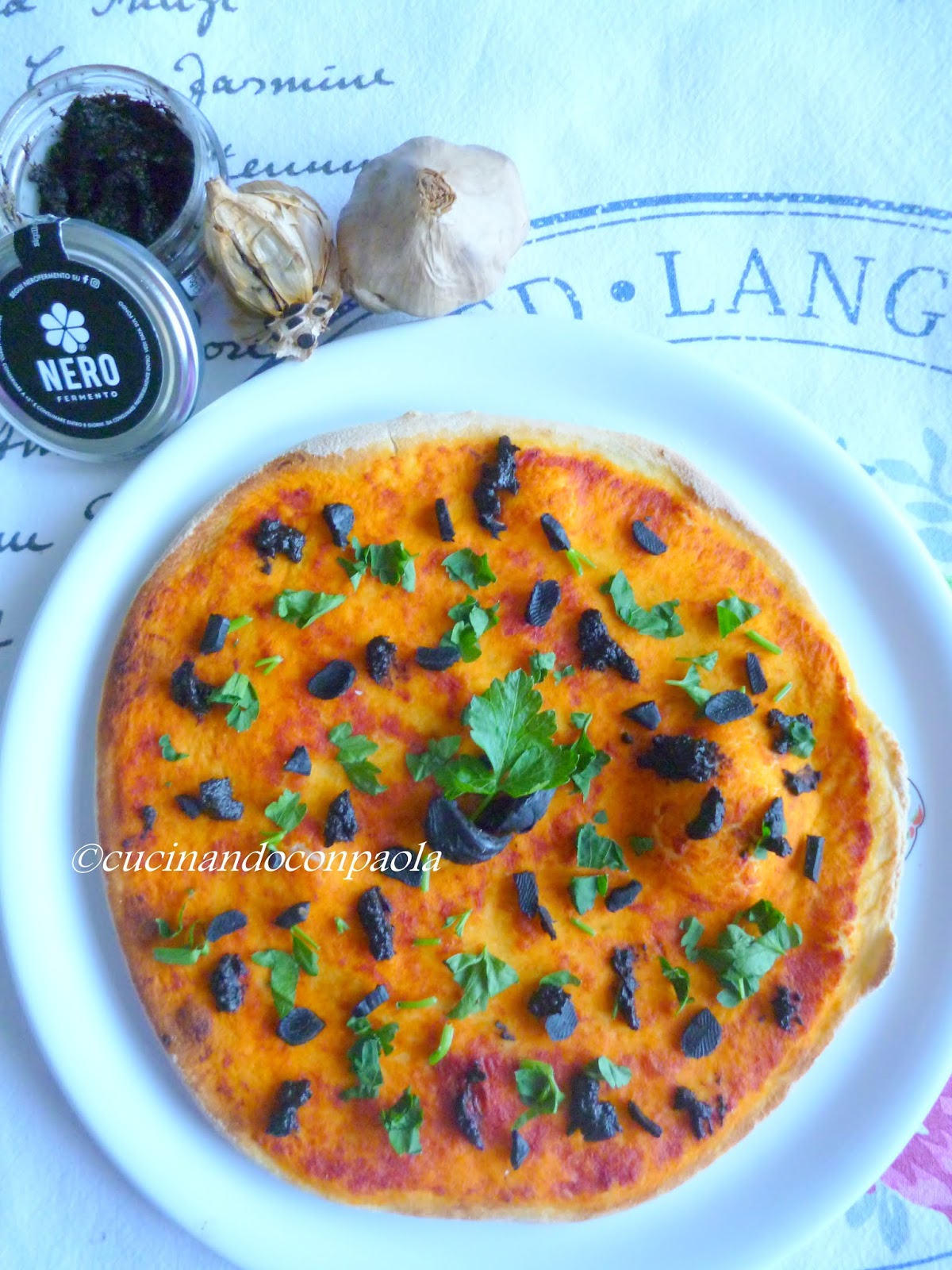 Sfornate e servitele con gocce di crema d’aglio nero di Voghiera.