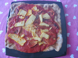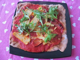 30 gr funghi porcini essiccati, passata di pomodoro, formaggio vegan stagionato, rucola, olio extravergine d’oliva, sale integrale.