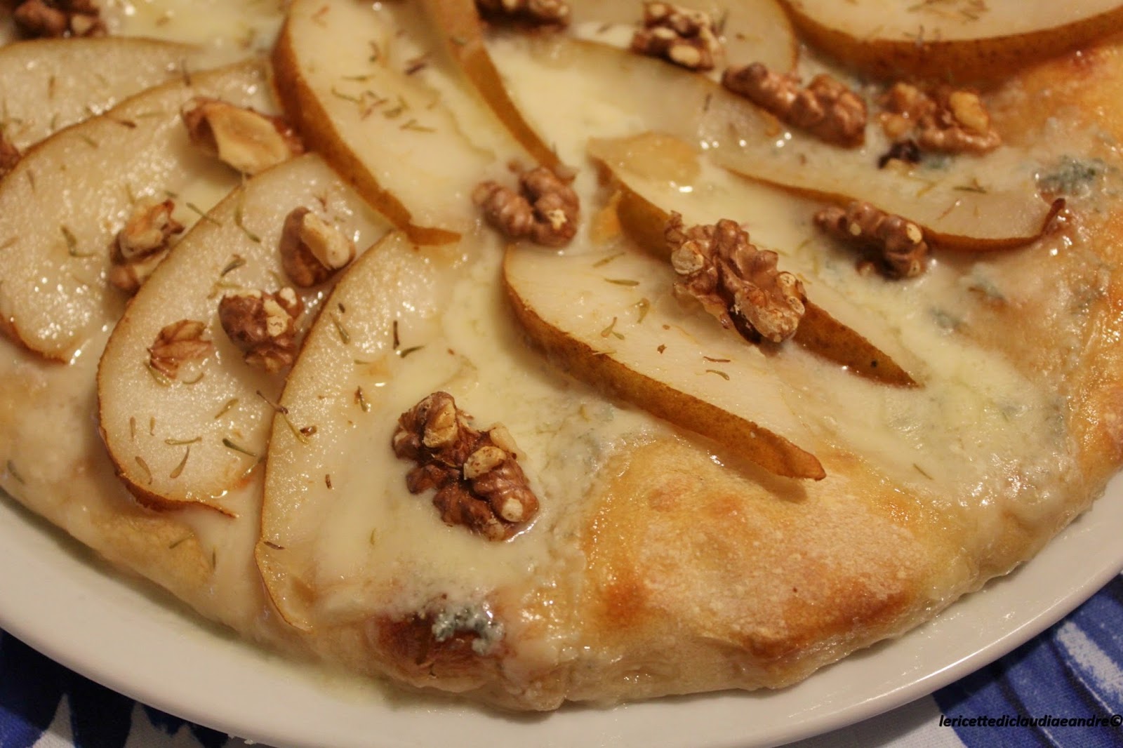 Pizza con gorgonzola, pere, noci e lievito madre