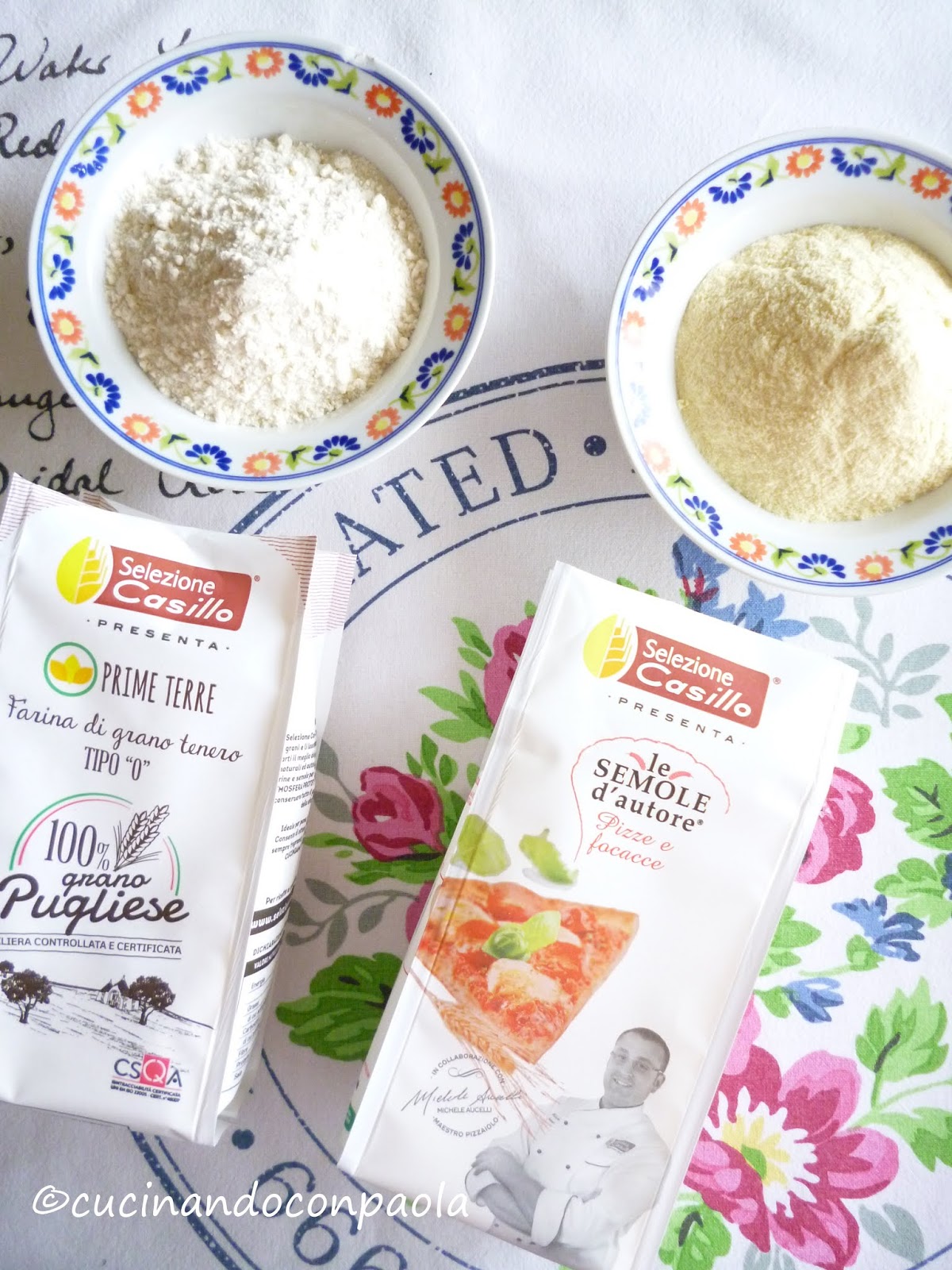 - 400 g di farina “00″ tra cui 200 g di Semola di grano duro rimacinata – Pizze e Focacce . Selezione casillo