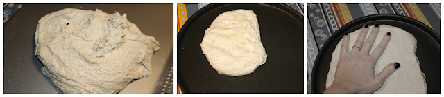 Prendete l’impasto già lievitato (QUI la ricetta), dividetelo in 4 parti, appiatittele con le mani unte con i restanti 2 cucchiai d’olio e lasciate riposare per 20 minuti. Dopodichè spianate ogni palla d’impasto direttamente nelle teglie per le pizze utilizzando il palmo delle mani. Io ho teglie antiaderenti che non ungo perchè basta l’olio di riposo dell’impasto, valutate voi.
