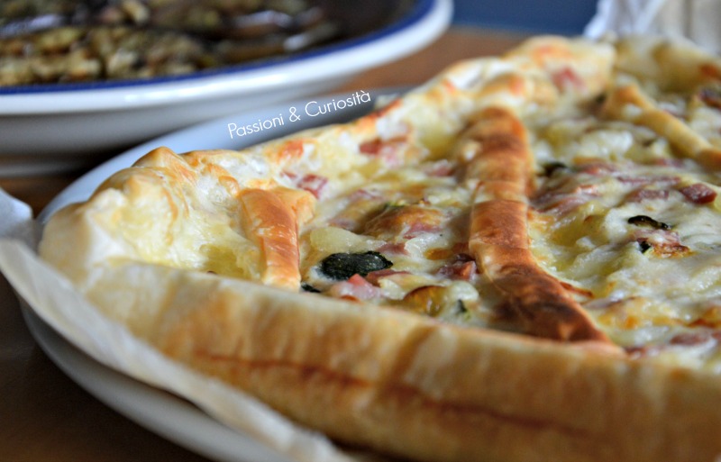 Una pizza rustica che ho riproposto sia in un’antipasto tagliandola a quadretti, sia in un buffet di compleanno.