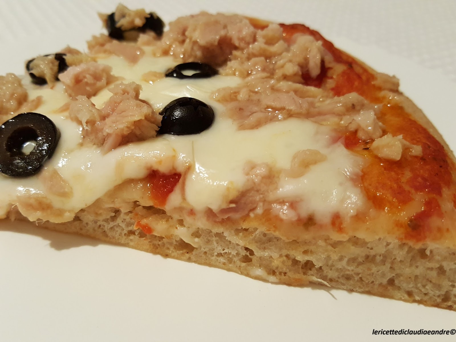 Pizza con tonno, mozzarella, olive e lievito madre