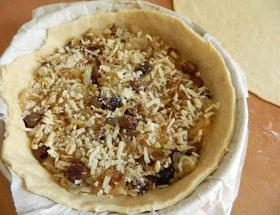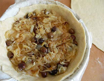 distribuire il ripieno di cipolle e olive sulla superficie,