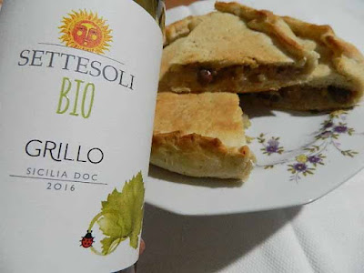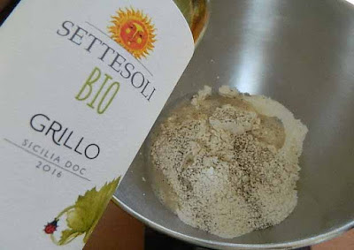e godersi questa bontà, magari sorseggiando un pò di Vino Bianco Bio Grillo delle Cantine Settesoli che abbiamo usato per l’impasto.