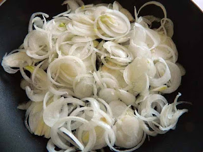 Preparare il ripieno: Pulire le cipolle e affettarle.