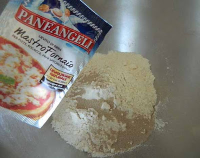 Impastare tutti gli ingredienti fino ad ottenere un impasto compatto e morbido. Lasciare lievitare per due ore.