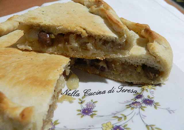 davvero unico. Il ripieno di cipolle bianche, il cui sapore dolciastro si combina magnificamente con le olive e le acciughe. Provatela e fatemi sapere se ne rimanete entusiasti come me.