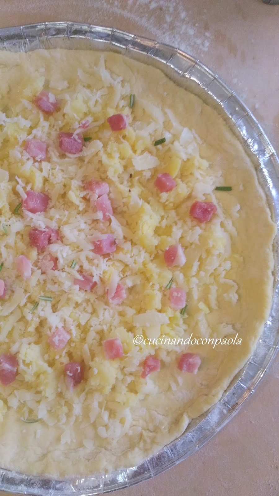 Disponiamo la pizza in teglia e versiamo un filo d’olio,