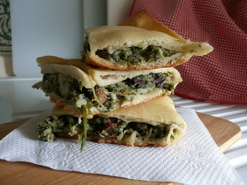 La pizza di scarole è un gustoso rustico con un ripieno a base appunto di insalata scarola, arricchito da olive nere, capperi e uvetta. E’ veramente appetitoso ma anche sano per l’abbondanza di verdura.